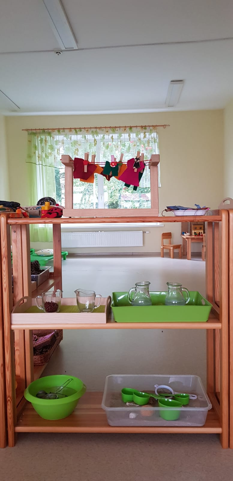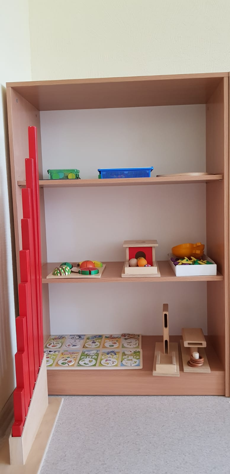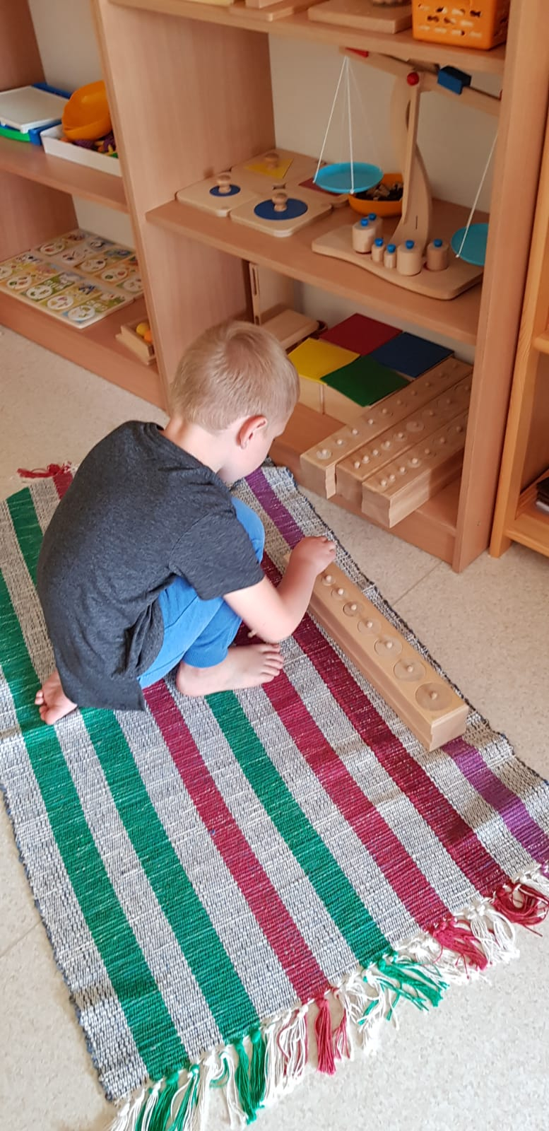 Skolotāja uzdevums ir parādīt bērnam, kā ar materiālu strādāt, sniegt atbalstu, ja tas nepieciešams, bet nedarīt bērna vietā. Bērns labāk atceras tad, ja ir ne tikai redzējis vai dzirdējis, bet ir izdzīvojis ar visām maņām un paveicis pats. Montesori materiāls nav uzskates līdzeklis, tā būtība ir tajā, ka visu var ņemt rokās, pētīt, darboties. Bet ir jāievēro, ka katrs materiāls ir paredzēts savam uzdevumam un pēc darbošanās tas jānoliek atpakaļ tam paredzētajā vietā.Montesori didaktiskais materiāls ir veidots tā, lai tas organiski saplūstu ar bērna spējām un interesēm, kā arī tādā secībā, lai bērns justu tieksmi nepārtraukti izzināt vēl nezināmo. Darbošanās norit nepiespiesti, ar aizrautību un interesi, jo bērni izjūt iekšēju nepieciešamību darīt to, ko viņi paši izvēlas.