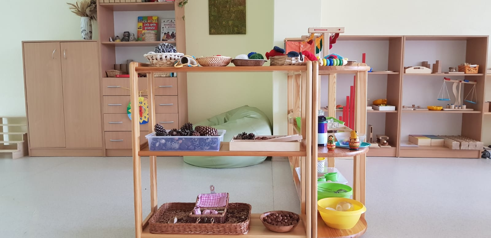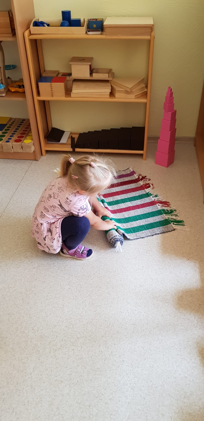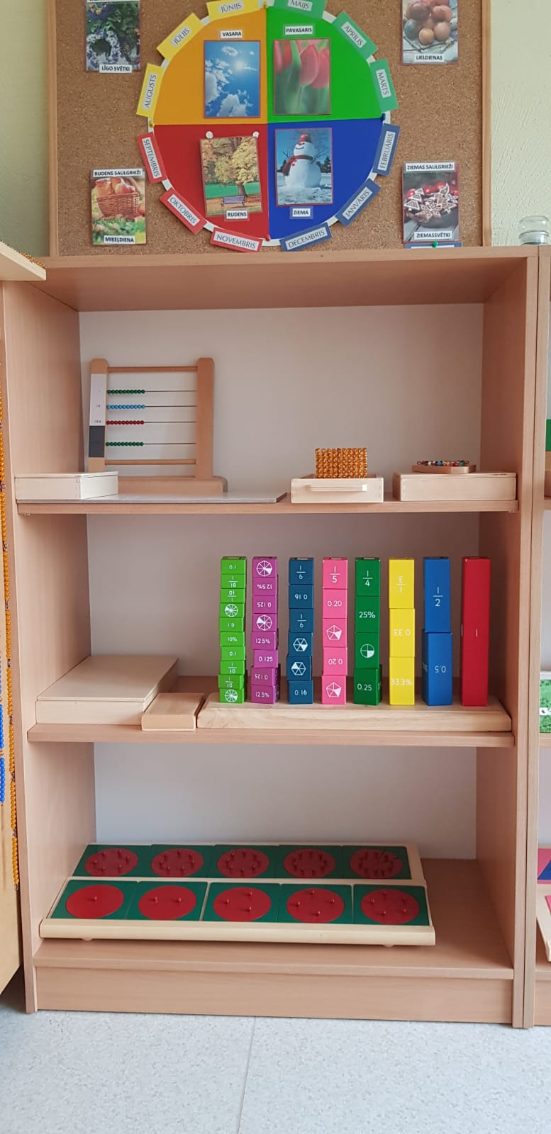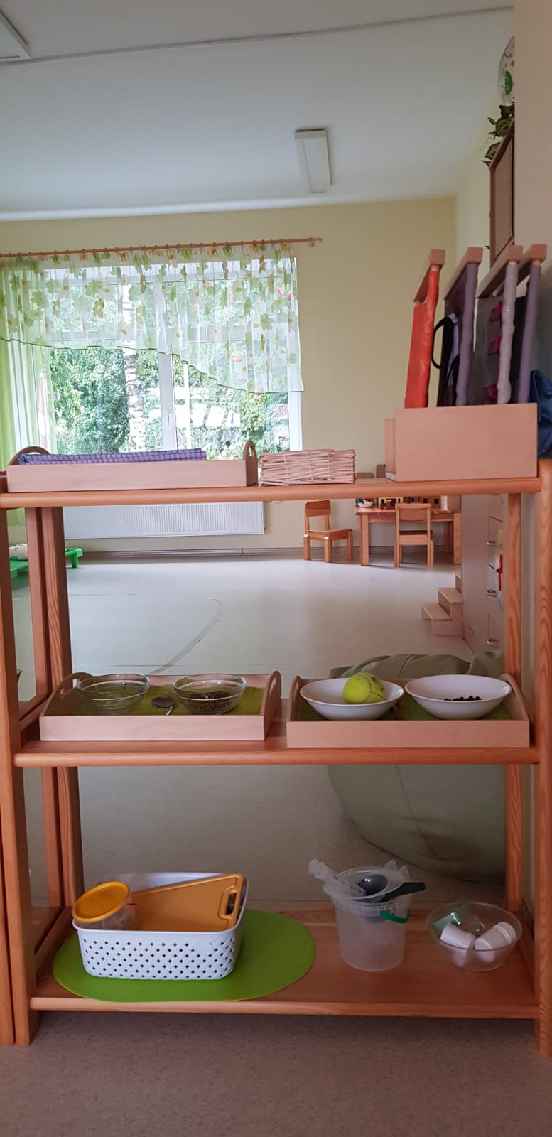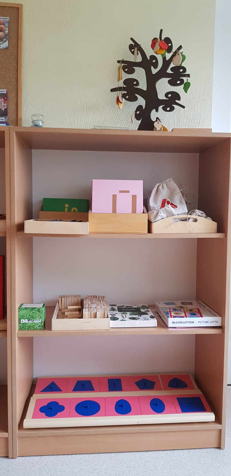 Skolotāja uzdevums ir parādīt bērnam, kā ar materiālu strādāt, sniegt atbalstu, ja tas nepieciešams, bet nedarīt bērna vietā. Bērns labāk atceras tad, ja ir ne tikai redzējis vai dzirdējis, bet ir izdzīvojis ar visām maņām un paveicis pats. Montesori materiāls nav uzskates līdzeklis, tā būtība ir tajā, ka visu var ņemt rokās, pētīt, darboties. Bet ir jāievēro, ka katrs materiāls ir paredzēts savam uzdevumam un pēc darbošanās tas jānoliek atpakaļ tam paredzētajā vietā.Montesori didaktiskais materiāls ir veidots tā, lai tas organiski saplūstu ar bērna spējām un interesēm, kā arī tādā secībā, lai bērns justu tieksmi nepārtraukti izzināt vēl nezināmo. Darbošanās norit nepiespiesti, ar aizrautību un interesi, jo bērni izjūt iekšēju nepieciešamību darīt to, ko viņi paši izvēlas.